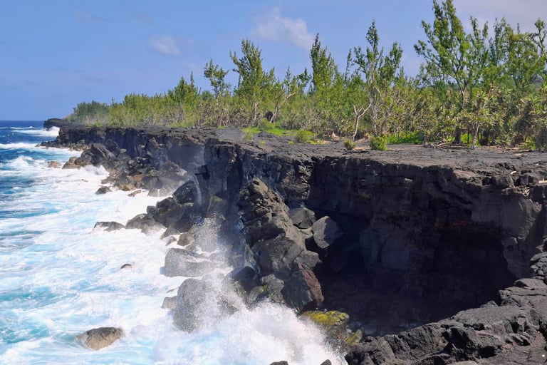 '' Set off to discover the most preserved coastal portion of Reunion Island. The circuit will begin with a visit to two must-see places: Grande Anse beach and the Langevin waterfall. You will then be immersed in the very special atmosphere of the Wild South, between vacoas and volcanic coastline beaten by the swell. Finally, you will contemplate the unique landscape of Grand Brûlé, where ancient lava flows flow down the mountain and cut the road to reach the ocean. ''